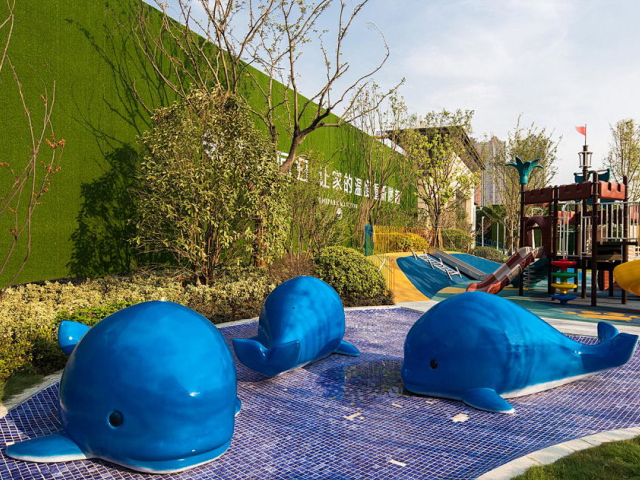 巧用玻璃钢卡通海豚雕塑,点亮滨海社区公园活力
