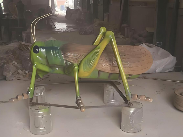 随后,科技与匠心在玻璃钢(玻璃纤维增强塑料)的舞台上交织共舞。这种材料,质轻而极坚,耐候且可塑,是实现“仿生”与“永恒”的理想介质。工匠们以精雕细琢的母模为蓝本,分层裱覆浸透树脂的玻璃纤维布,再经过严谨的脱模、打磨、修补,蚂蚱的形体在手中逐渐从虚幻走向坚实。真正的魔法,在于着色。高级汽车漆或特种雕塑颜料,在喷枪与笔下层层渲染,过渡,叠加。后腿内侧那一抹若隐若现的肉红,翅鞘上复杂变幻的金属光泽与细微纹路,甚至足尖那一点点沾染“泥土”的旧色,都需耗费数日之功。其目标,是让光线在雕塑表面产生与真实生命肌理无二的反射与折射,达成“几可乱真”的视觉震撼,却又能被触感明确告知其人造物的本质——这种微妙距离,正是艺术之所在。